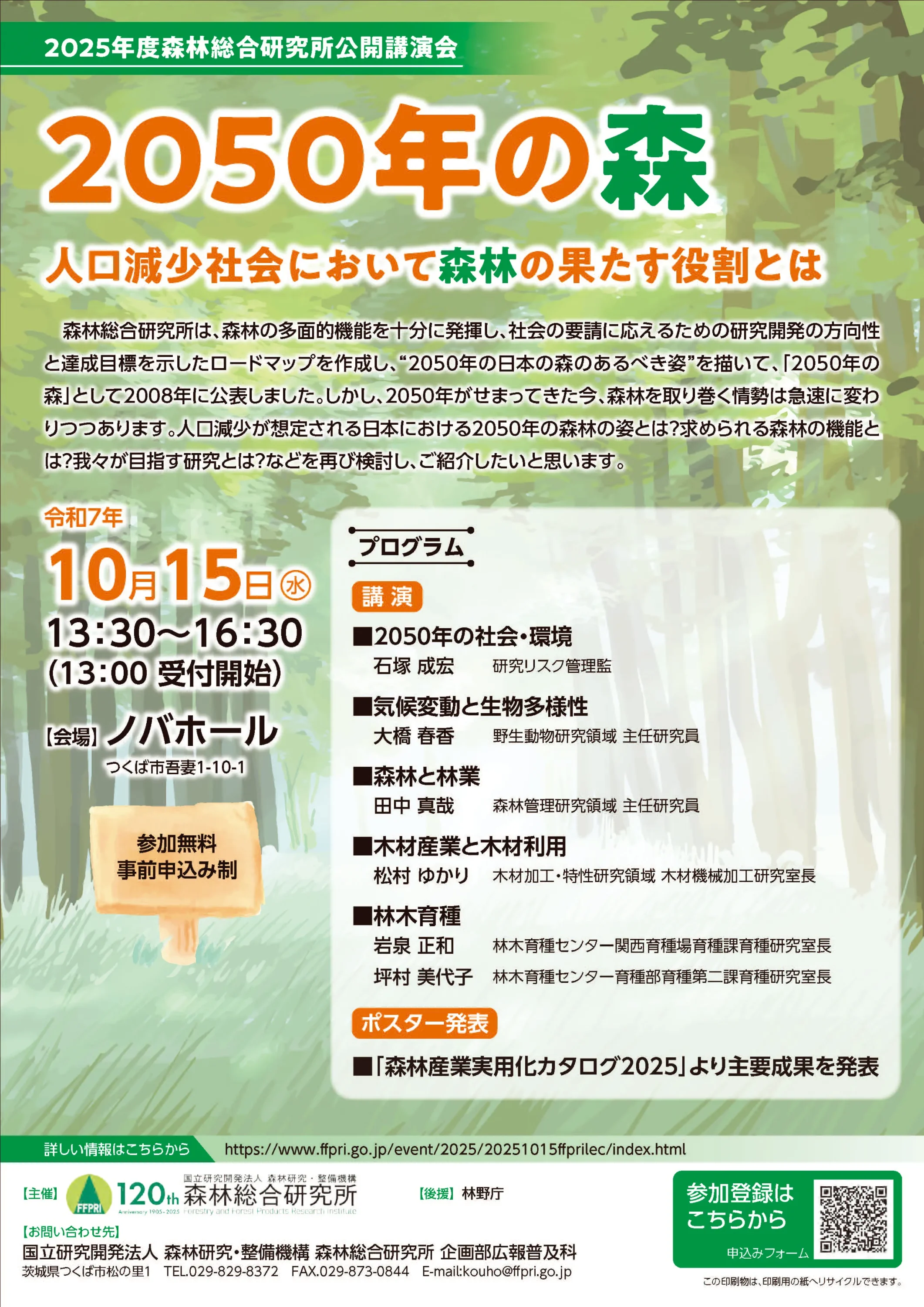 2025年度 森林総合研究所公開講演会 「2050年の森:人口減少社会において森林の果たす役割とは」開催のお知らせ