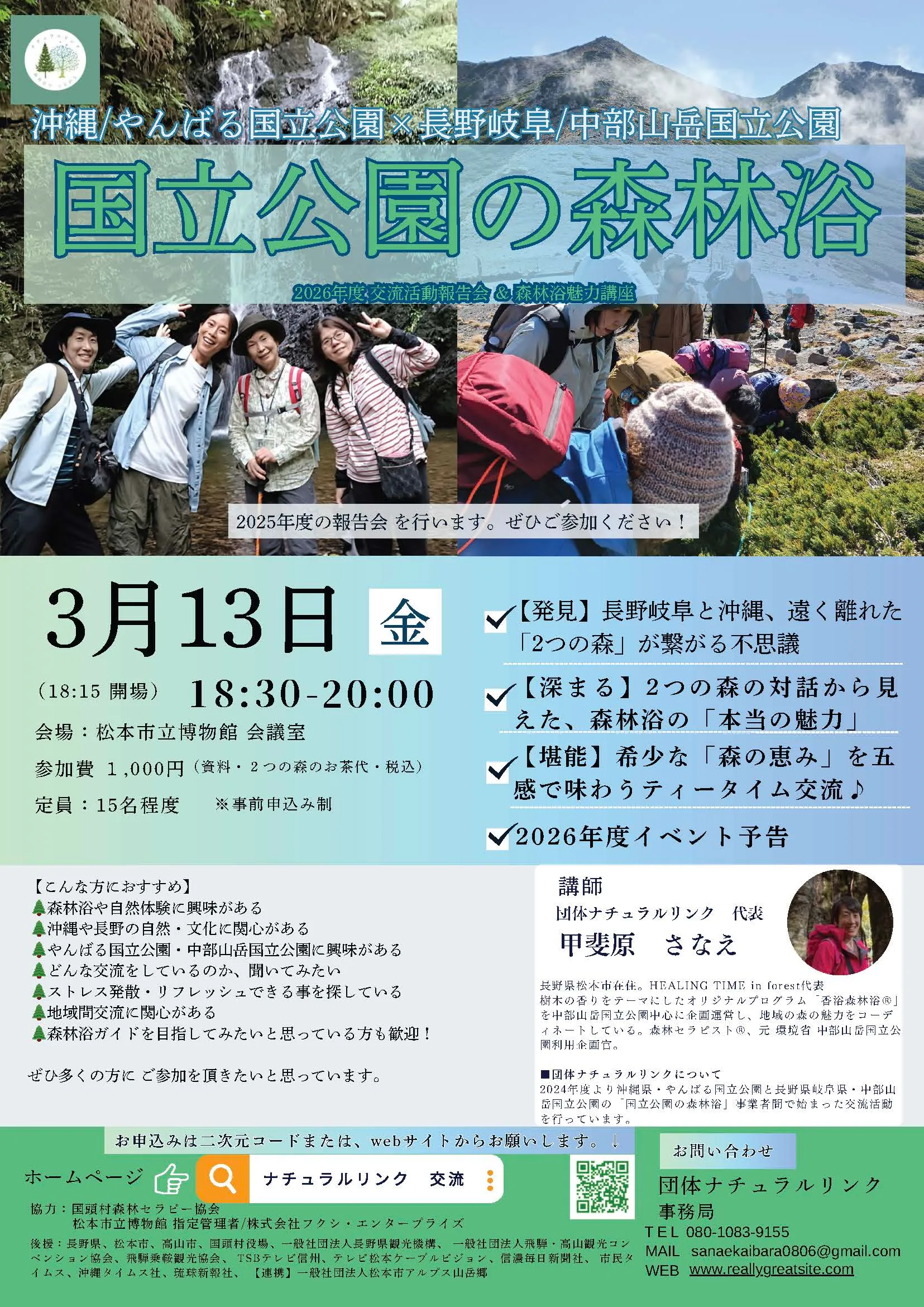 2つの森の物語 ― ナチュラルリンク2026年度活動報告会 (中部山岳国立公園・やんばる国立公園)& ミニ森林浴講...