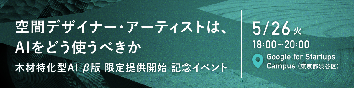 本イベントでは、そのAIの公開を機に、空間デザインにおけるAI活用の可能性を探ります。