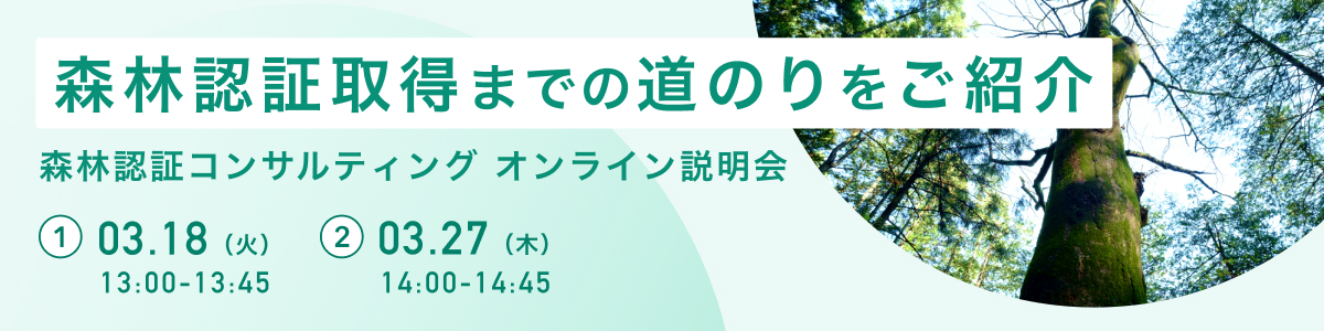 今回のセミナーでは、森林認証の取得のメリットや取得までの道のりを解説します。