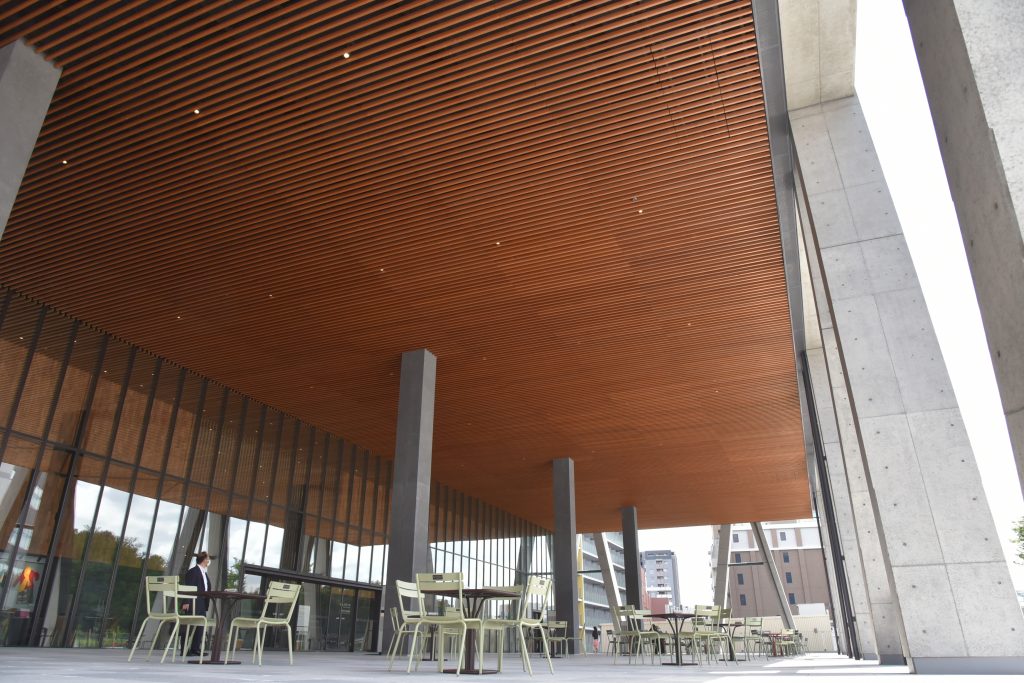 力を入れている製品の一つである「コシイ・スーパーサーモ」は、フィンランドで誕生したサーモウッド技術を用いて処理した木材です。高温の水蒸気で熱処理することで、薬剤を使わずに寸法安定性と耐久性を向上させることができる、非常に環境にやさしく、ケミカルレスで安全な技術です。約10年前から国産のスギ利用を拡大させようという動きの中で導入が進められました。国産材に合わせて改良した処理により、日本の気候で屋外利用にも適した木材となっています。脱炭素社会の実現に資する等のための建築物等における木材の利用の促進に関する法律ができ、さらに一般にも広がりをみせています。より多くの国産材を利用し、産地活性化を図り、社会、環境に貢献できる製品にしていきたいと思います。