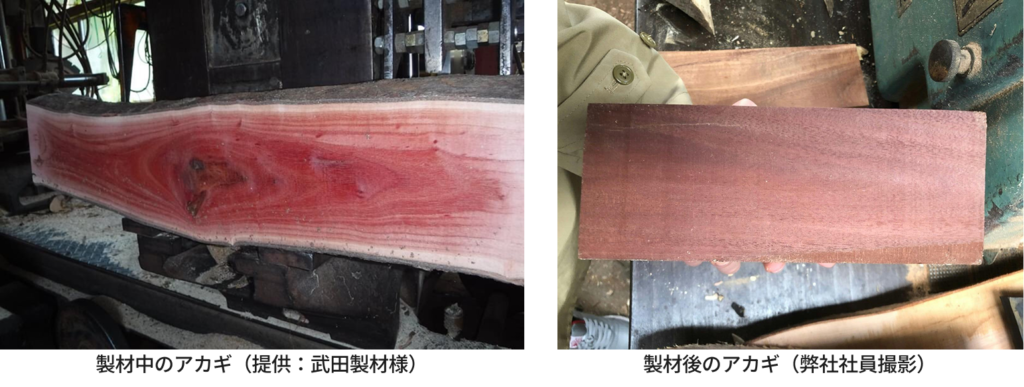 実は先日、このアカギの問い合わせが森未来に舞い込んできました。なんでも仏像彫刻の素材を探していらっしゃるとのこと。人づてに「あの人なら持っているかも」という人を何度も紹介してもらい、何とか調達することができました。